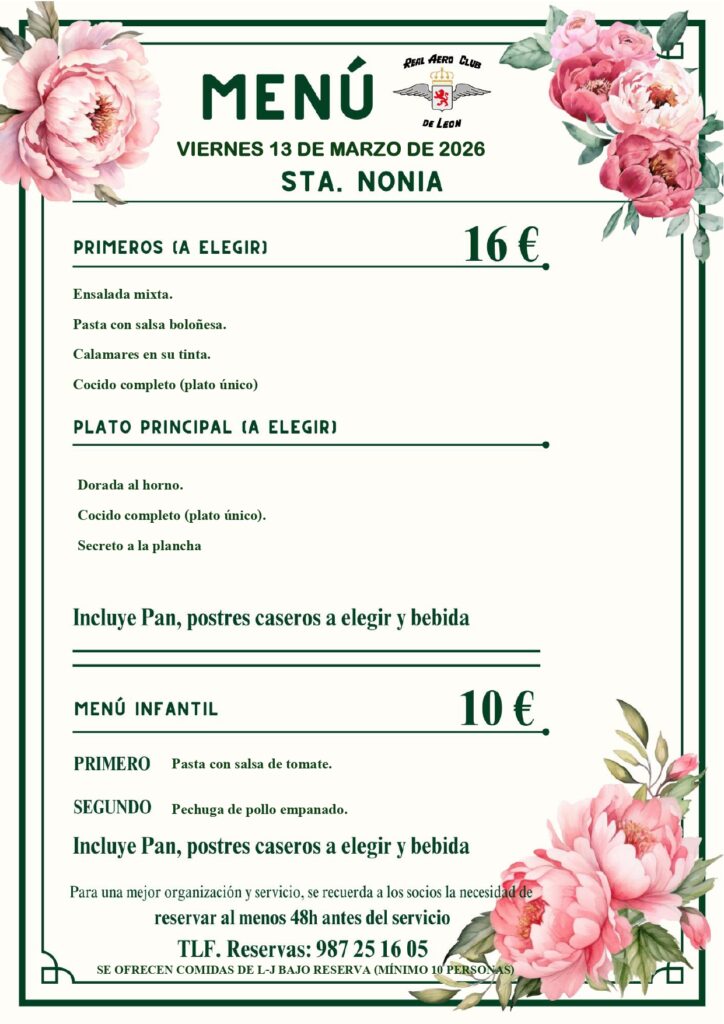 #StaNonia #RealAeroClubDeLeón #MenúDelDía #CocinaCasera #GastronomíaLeonesa PlanEnFamilia DóndeComerEnLeón