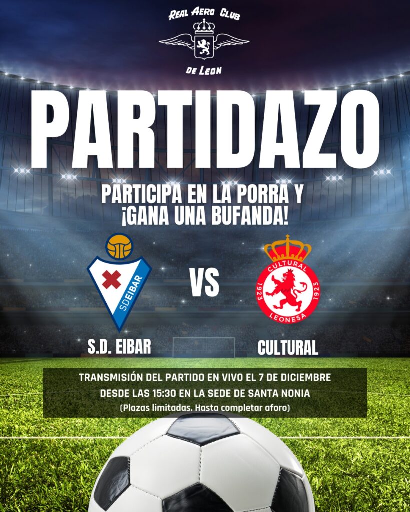 Este 7 de diciembre no te pierdas el choque entre S.D. Eibar y Cultural y Deportiva Leonesa en la sede de Santa Nonia del Real Aero Club de León.