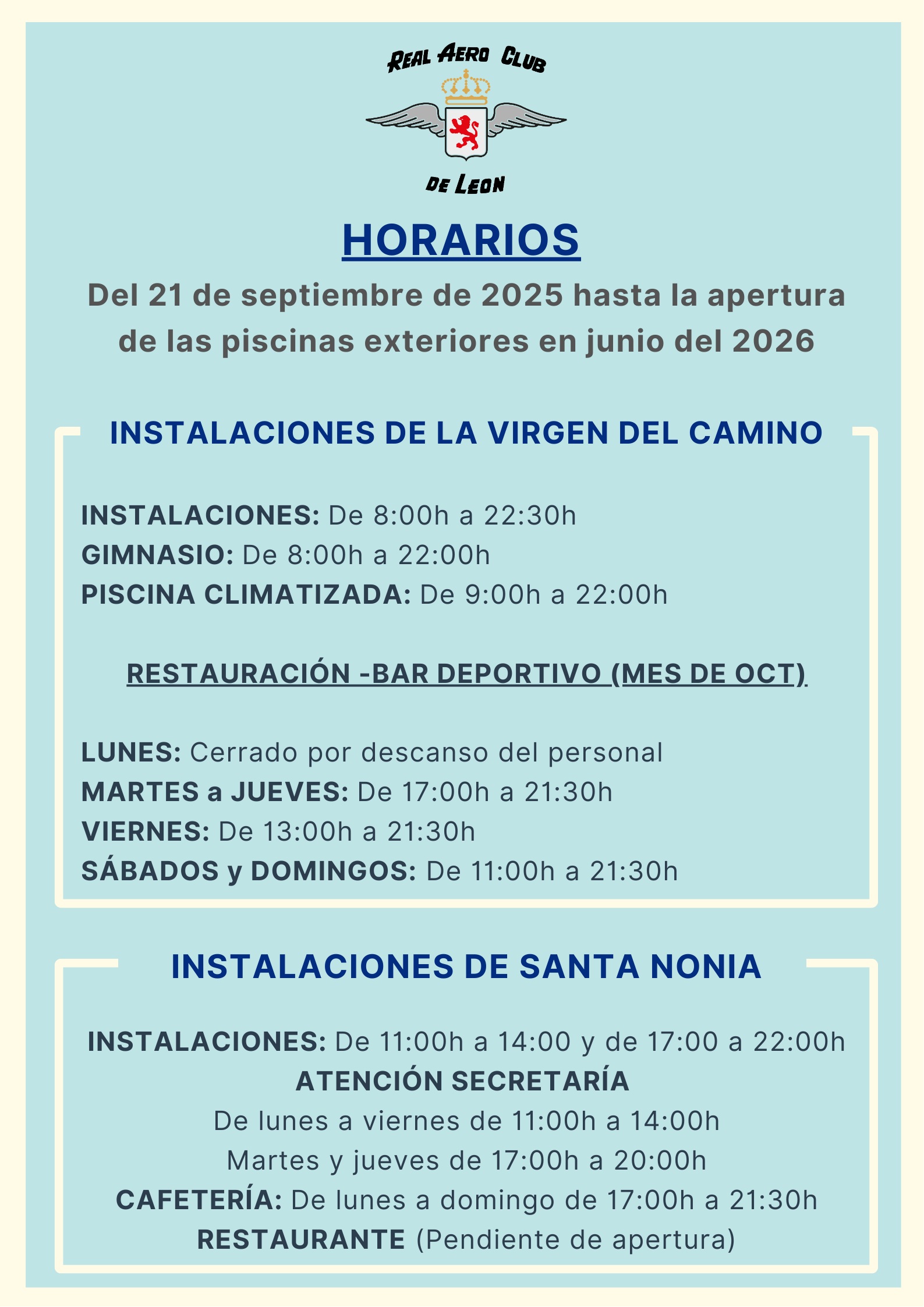 📝¡Toma nota del horario de nuestras instalaciones en la Virgen del Camino y Santa Nonia!