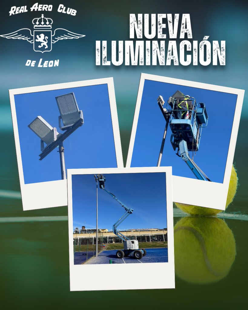 Durante estos días se están llevando a cabo los trabajos de renovación completa de la iluminación de la pista 1 de tenis y de las pistas polideportivas del Real Aero Club de León.
