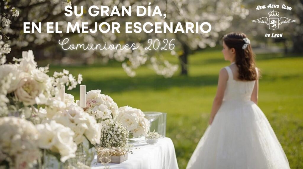 En el Real Aero Club de León hacemos que las Comuniones sean inolvidables: espacios amplios, menús personalizados, atención exquisita y un ambiente que combina tradición y encanto.